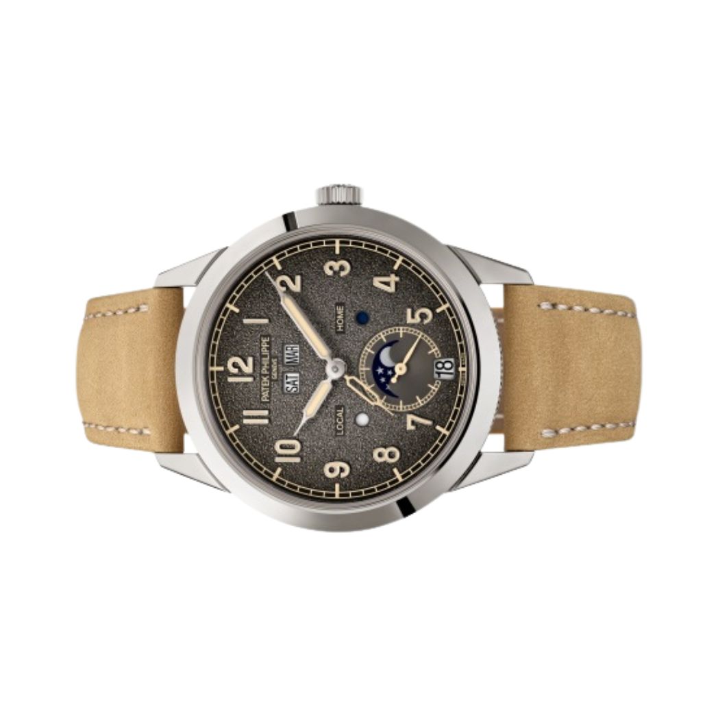 This is the first time Patek Philippe has put two special features in one watch. The 5326G-001 Annual Calendar Travel Time is powered by a new, automatic movement, called 31-260 PS QA LU FUS 24H. This makes sure the watch keeps perfect time and has a battery life of up to 48 hours. The movement, which is 33 mm wide and 5.6 mm thick, is made of 409 parts and uses a 21 karat gold rotor.