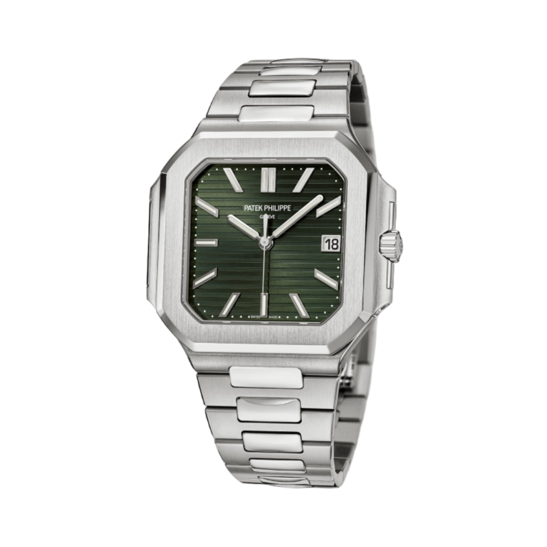 The Patek Philippe Cubitus 5821/1A combines luxury and casual style, presenting a watch that balances sophistication and comfort. This new model brings together Patek Philippe’s commitment to precision with a fresh, modern design in a steel case and bracelet, ideal for everyday wear with an elegant touch.
