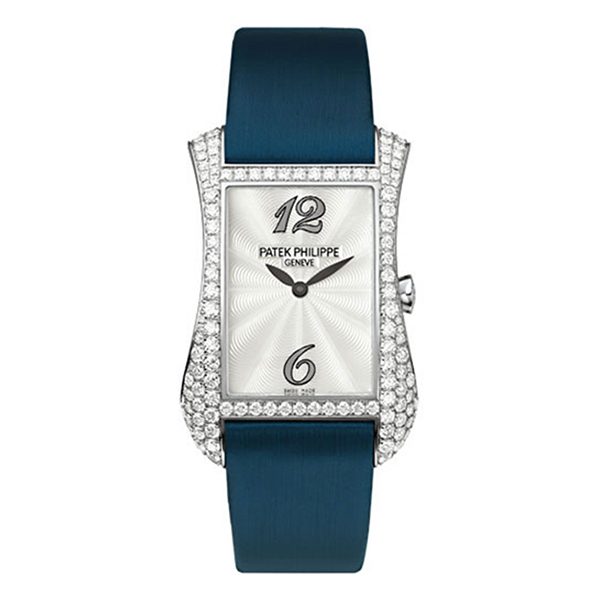 Patek Philippe Gondolo 4972G-001 Serata Guilloche Mother of Pearl Diamond-Set Bezel 27.4 mm x 39.7 mm 18K White Gold Midnight Blue Satin Straps Ladies Watch