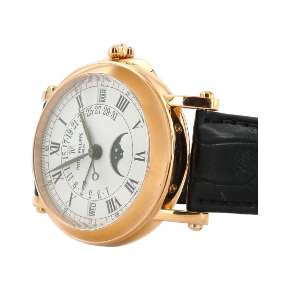 This Patek Philippe watch is not just a timekeeper; it’s a marvel of engineering. It boasts an array of functions, including hours, minutes, seconds, day, retrograde date, month, perpetual calendar, leap year indicator, and moon phase. The perpetual calendar ensures that you never need to manually adjust the date, even during leap years. The moon phase complication adds a touch of celestial beauty to the dial.