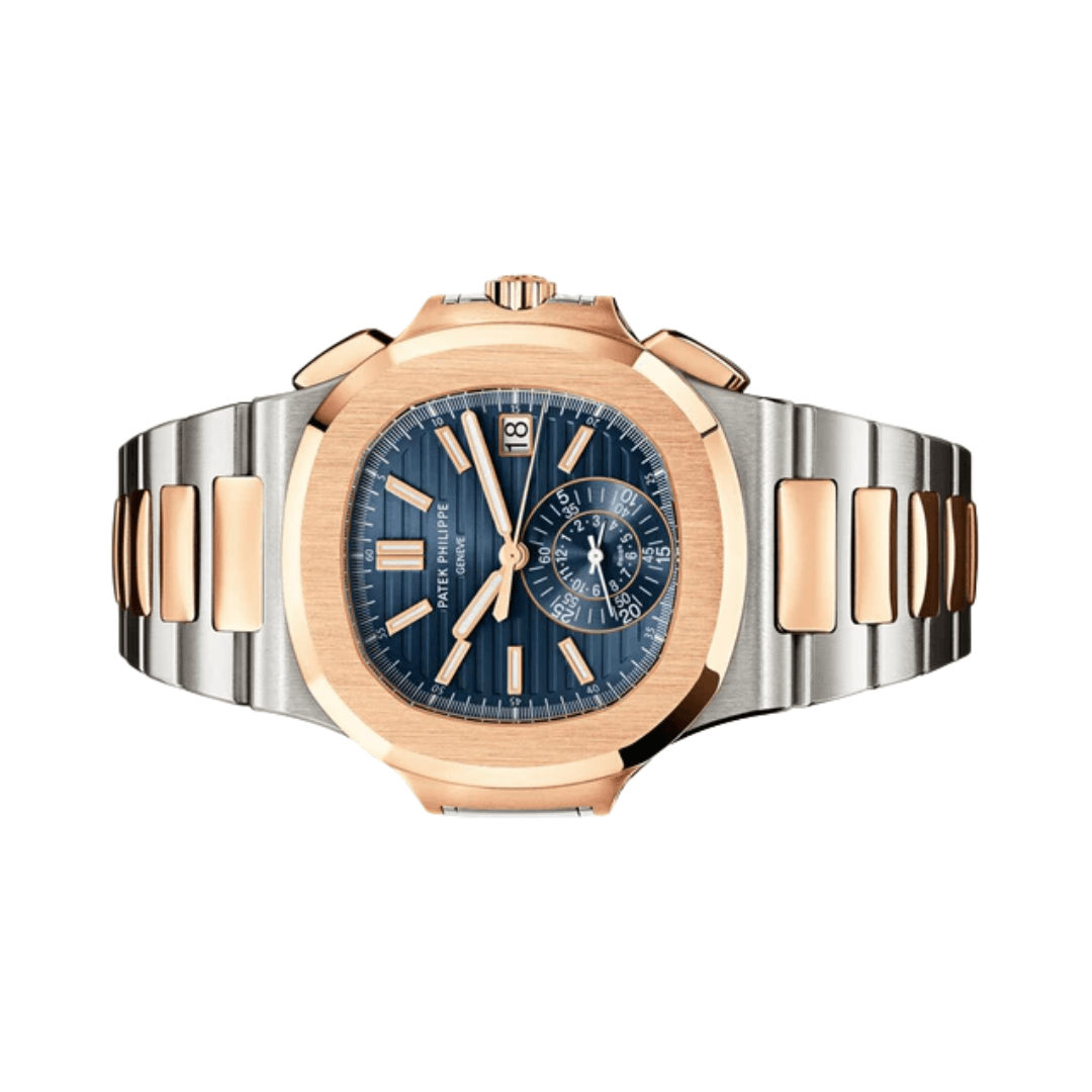 The Patek Philippe Nautilus 5980/1AR-001 Blue Dial features an 18k rose gold case paired with stainless steel and a rose gold bracelet. The combination of these metals adds a touch of sophistication to the watch. The fixed rose gold bezel enhances its overall appeal. The blue gradient dial is eye-catching and complements the rose gold-tone hands and index hour markers. The luminescent hands and markers ensure easy readability even in low-light conditions.