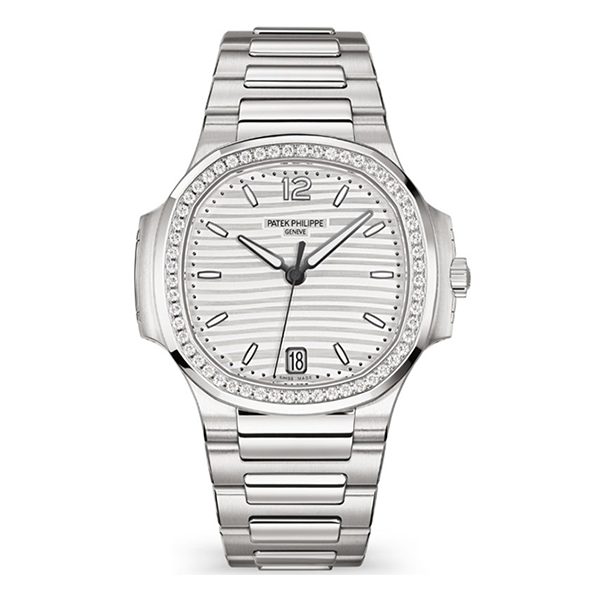 The Patek Philippe Nautilus 7118/1200A-010 is a beautiful watch for women who like classy and practical accessories. This watch has been improved with a slightly bigger case and new dial colors to match the preferences of modern women. It is made from substantial stainless steel and has a 35.2mm case size. The bezel is decorated with diamonds, which makes it look more luxurious. You can wear the watch daily without any concerns because it can handle water up to a depth of 196 feet.