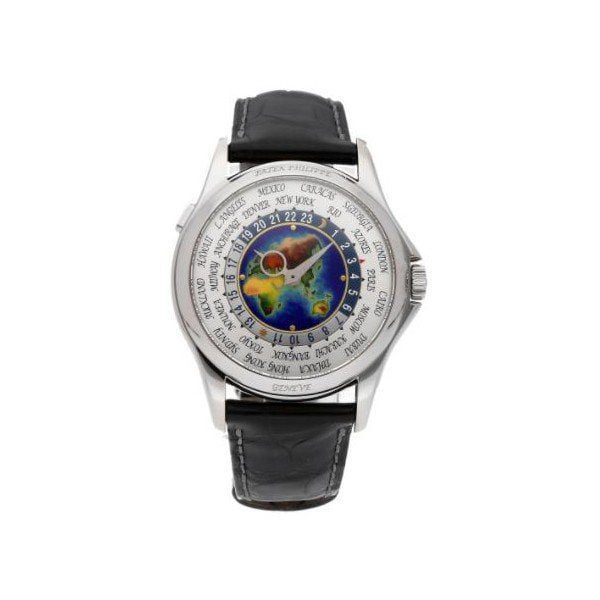 Introducing the Patek Philippe World Time Complications 5131G-010, a remarkable timepiece designed for gentlemen with a taste for elegance and functionality. This wristwatch boasts a stunning enamel dial adorned with a cloisonné map of the world at its center. Let’s delve into the features that make this watch truly exceptional.