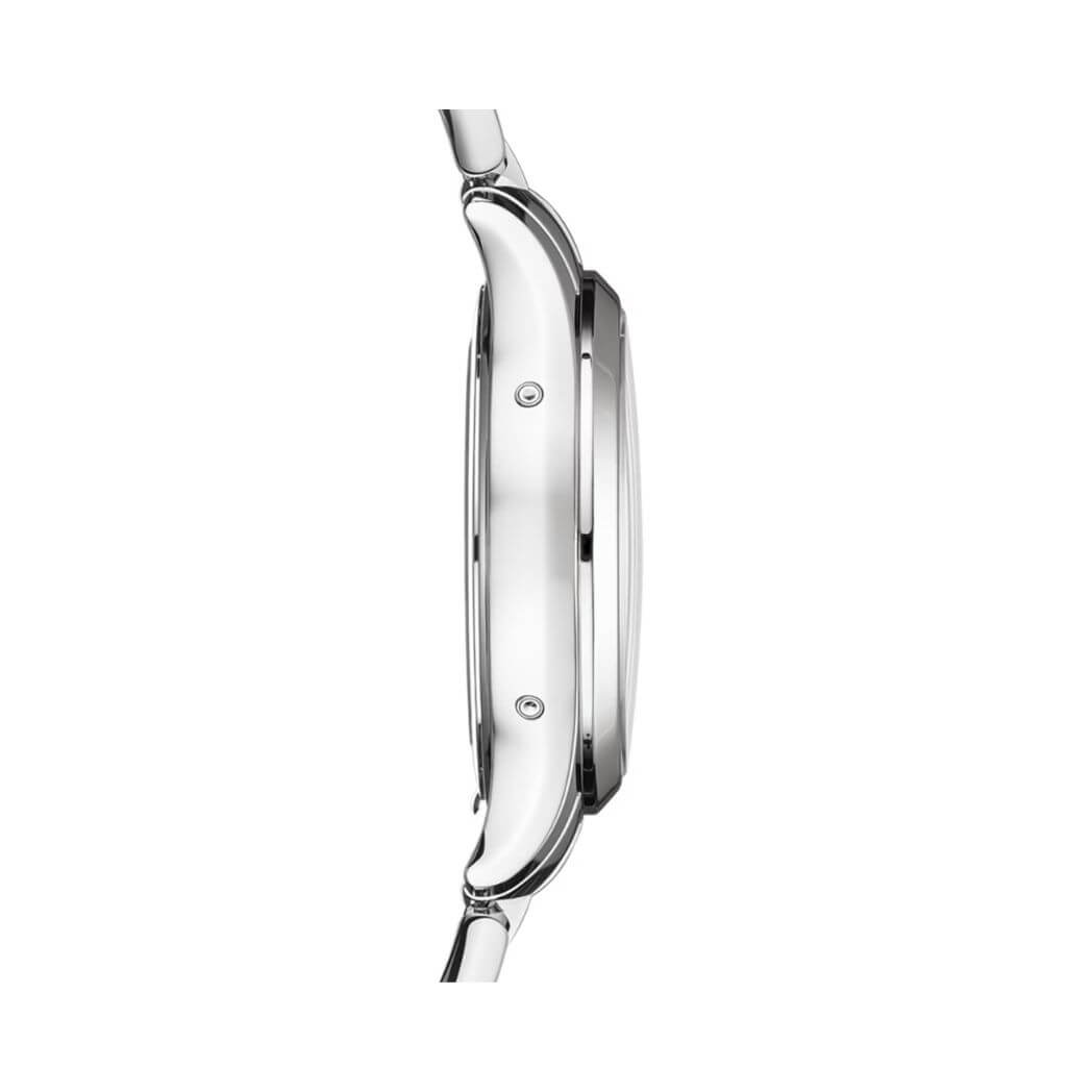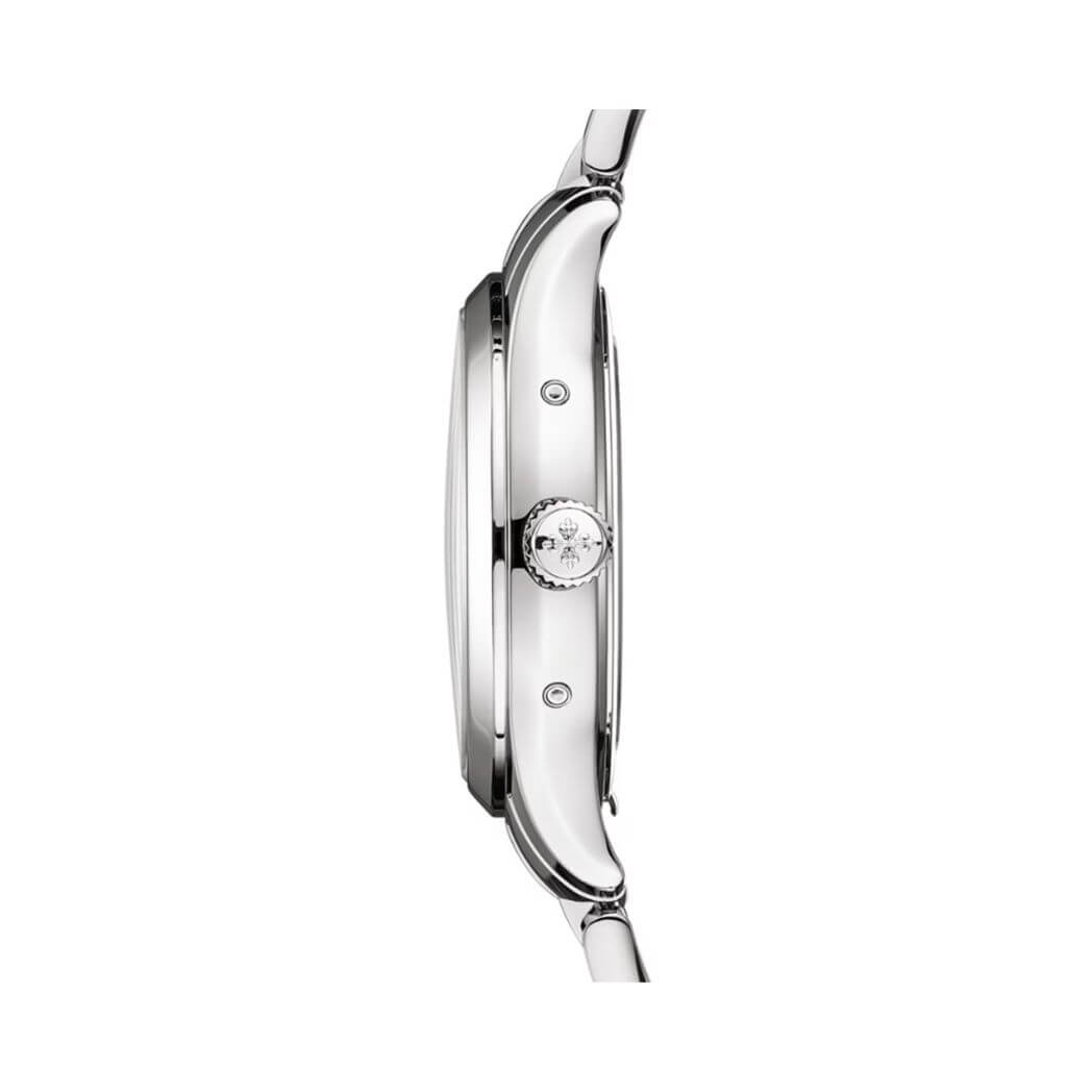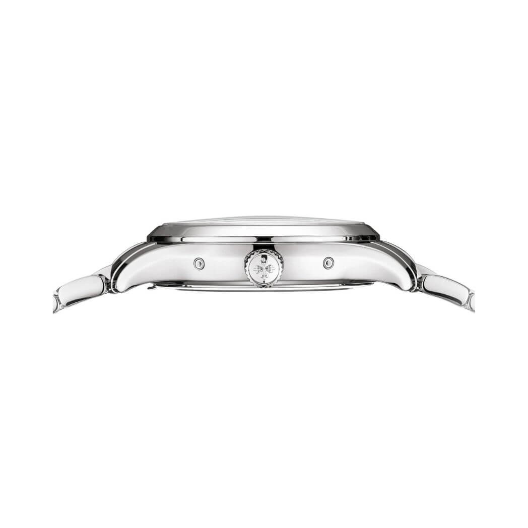Crafted with precision, the 38mm stainless steel case exudes understated luxury. The unobtrusive design is enhanced by subtle details, such as a chamfered edge on the sapphire crystal. The polished steel bracelet, featuring five rows of links, plays with light, creating a delightful interplay of brilliance and shade.