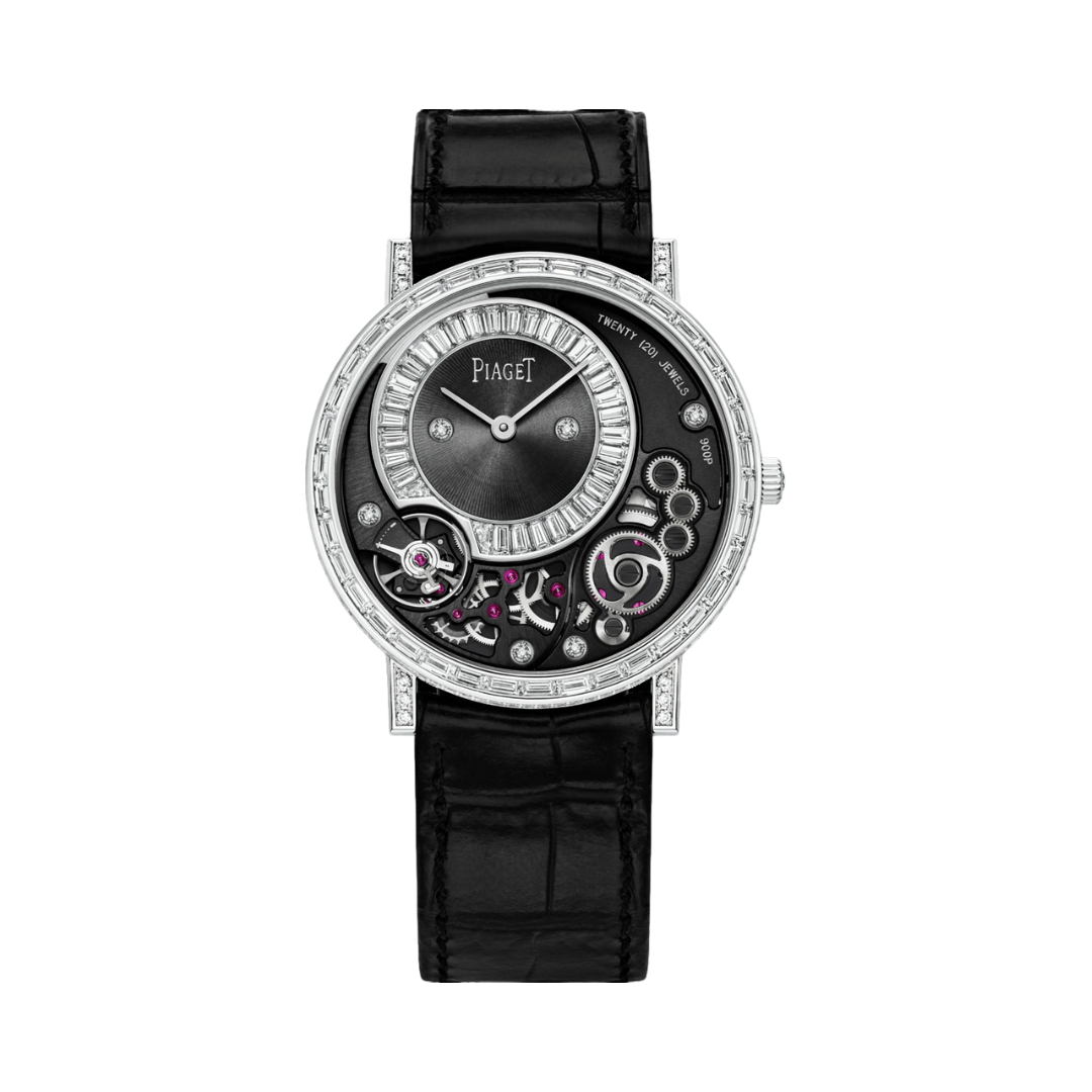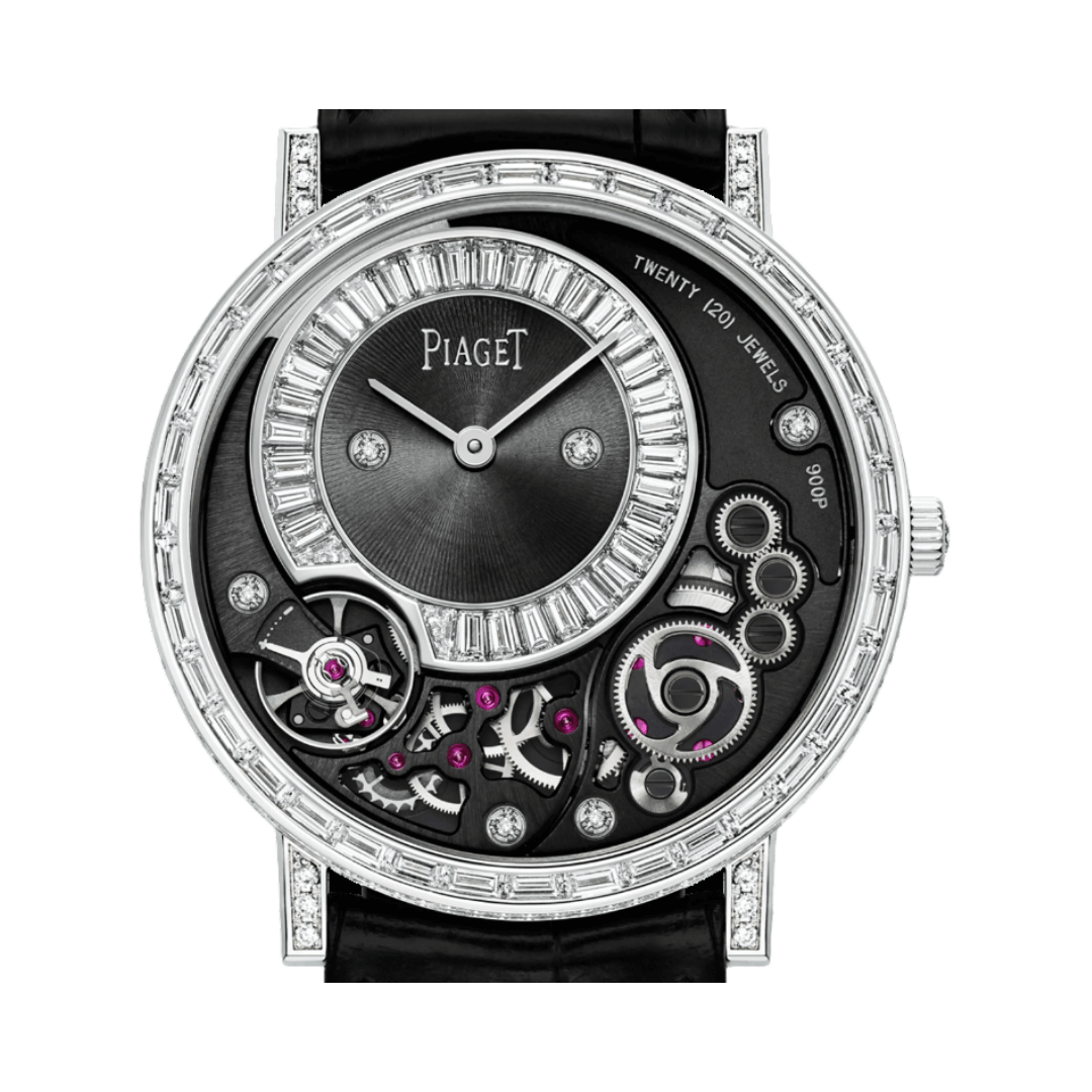 The Piaget Altiplano 900P G0A39120 is a stylish and elegant women’s watch made for those who love fine details. It features a beautiful 38mm round case made from white gold, giving it a luxurious and classic appearance. The bezel is set with dazzling baguette diamonds, adding a touch of sparkle to the overall design.