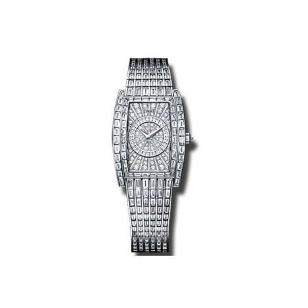 38 mm 18kt white gold case, pull out crown, quartz movement, solid case back, diamond dial, ?Integrated to Bracelet clasp, water resistant to 30m/100ft.