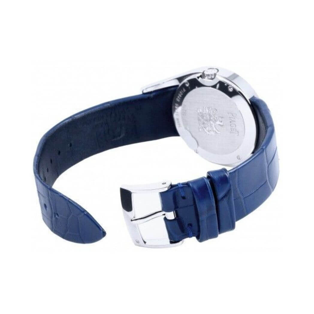 Experience timeless elegance with the Piaget Limelight Gala G0A42163, a stunning ladies’ watch that reimagines a classic design from 1973. This luxurious timepiece boasts a round case, gracefully adorned with asymmetrical lugs designed to embrace your wrist. The bezel is adorned with a sparkling row of brilliant-cut diamonds, and its pure blue dial exudes contemporary femininity, complemented by an elegant blue leather strap.