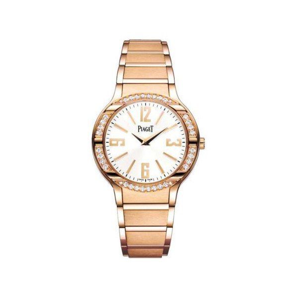 32mm 18kt rose gold case, 7.1mm thickness, silver dial, scratch resistant sapphire crystal,?Fixed Rose Gold Set with Diamond bezel, quartz movement, folding clasp, water resistant to 30m/100ft.
