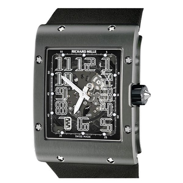 The extra-flat, rectangular case of the RM 016 marked a new phase in the brand’s history, yet the watch remains one hundred per cent Richard Mille, featuring the same attention to detail and technical achievement as its predecessors. Skeletonized automatic winding movement with hours, minutes, date and variable-geometry rotor. The baseplate and the bridges are crafted of grade 5 titanium, a biocompatible, highly corrosion-resistant and remarkably rigid alloy, which enables the gear train to function effortlessly.