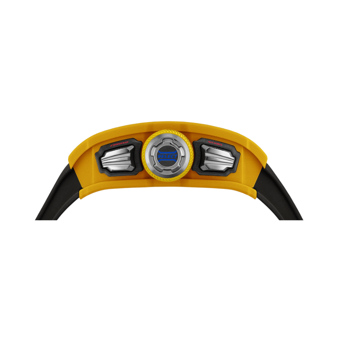This is a limited edition model with only 120 pieces made in yellow Quartz TPT Fiber, making it a rare and collectible watch for luxury watch lovers. The skeleton dial adds a modern, high-tech feel, allowing a view of the inner mechanics.