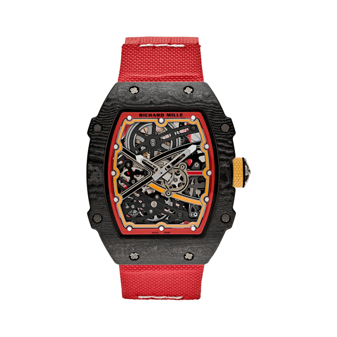 The RM 67-02 Alexander Zverev watch comes with a textile and elastic bracelet in a vibrant red hue, perfectly matching the strap. This combination ensures a comfortable and secure fit for both men and women.
