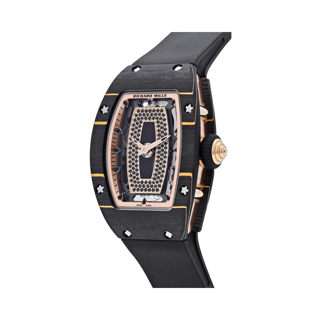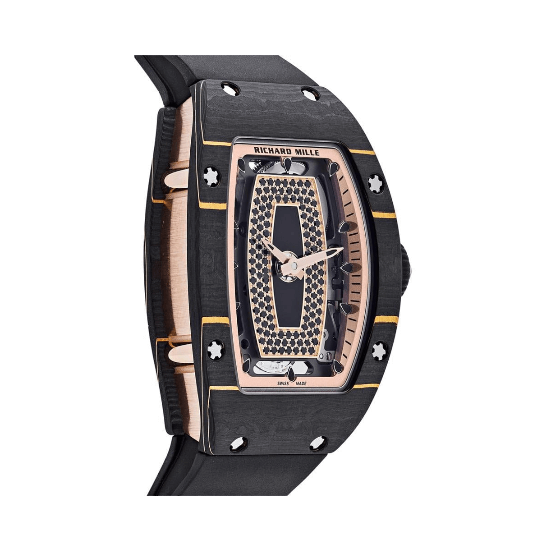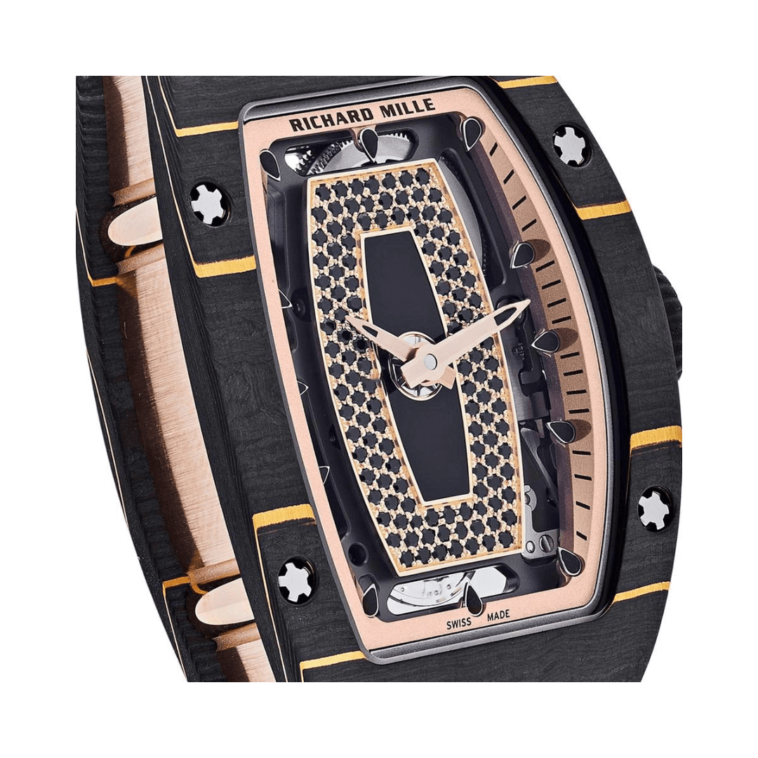 The Richard Mille RM07-01 RG CAO Gold Carbon TPT ONYX Dial Women’s Watch is a beautiful blend of luxury and functionality. This exquisite timepiece is crafted with high-quality materials, making it a perfect accessory for any sophisticated woman.