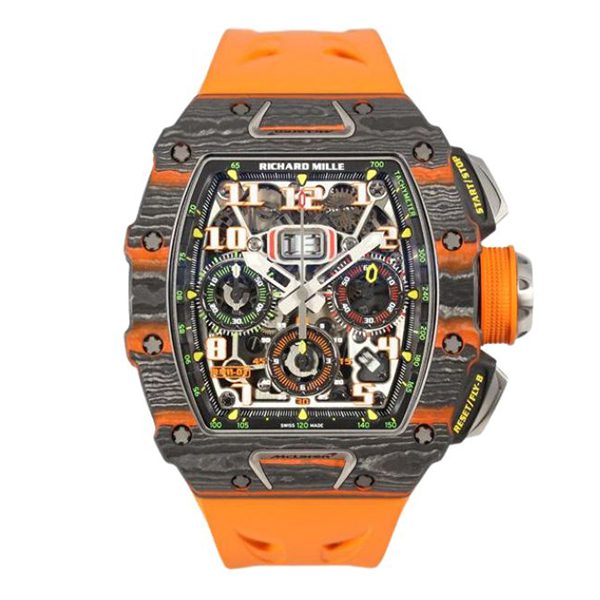 Richard Mille RM11-03 MCL CA-FQ Carbon NTPT Mclaren Flyback Chronograph 50mm x 42.70mm Orange Straps Men’s Watch