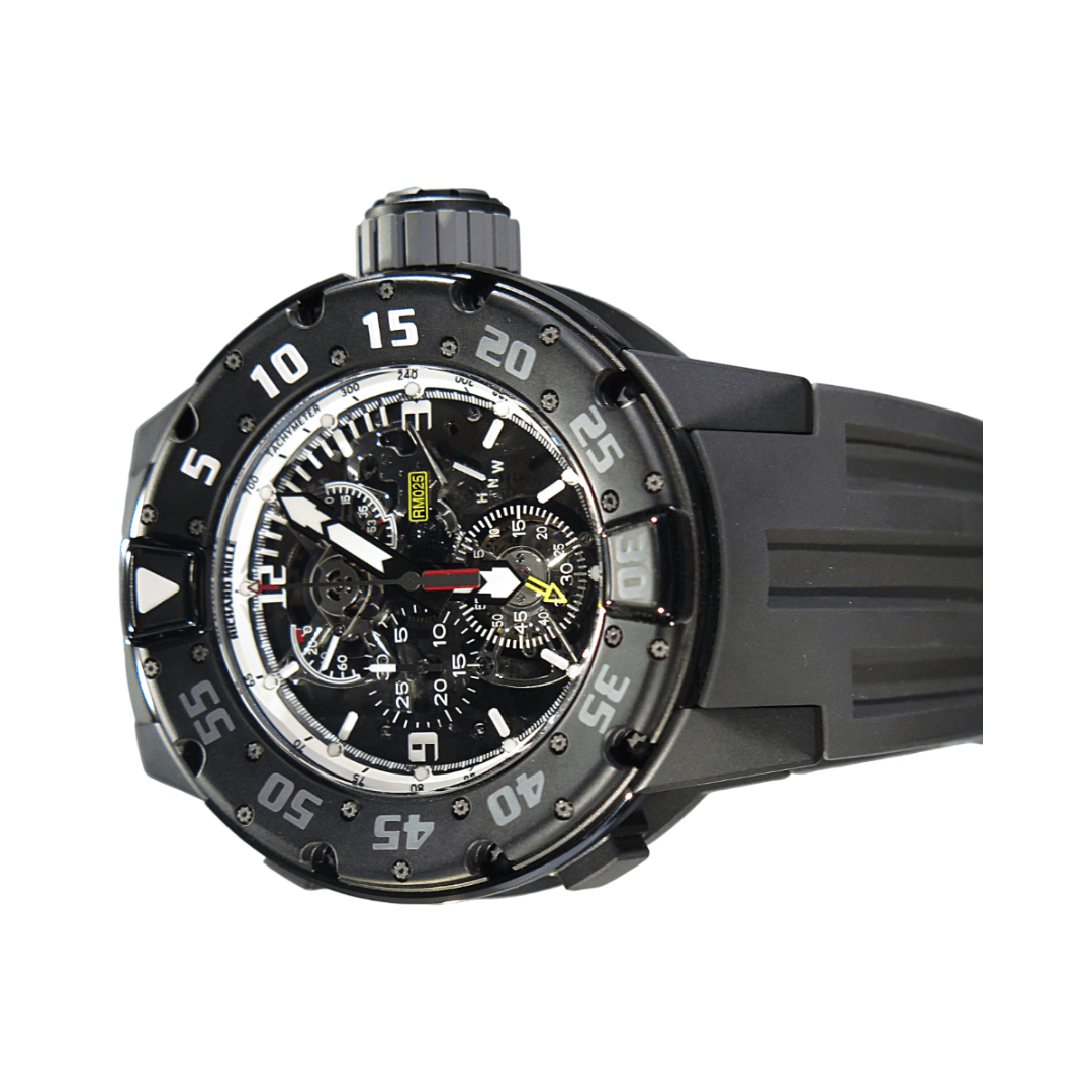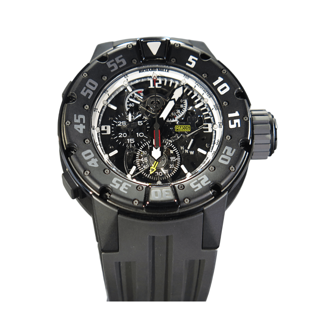 The Richard Mille Tourbillon RM025 AN CA TI is a luxury men’s watch with a powerful and bold look. It is built using strong and lightweight titanium for the case, which gives the watch a solid feel while staying comfortable on your wrist. The large 49.70 mm case makes a bold style statement and suits those who prefer a bigger watch size.