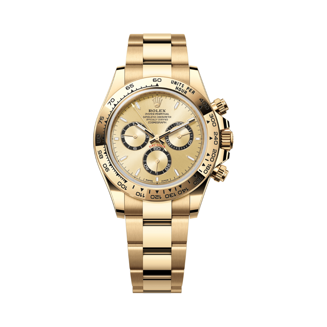 The Rolex Cosmograph Daytona 126508-0005 is a timeless piece combining sophistication and functionality. The 40mm case is crafted from polished 18k yellow gold, exuding elegance. Its golden dial with index hour markers ensures easy readability, making it both a style statement and a practical tool.