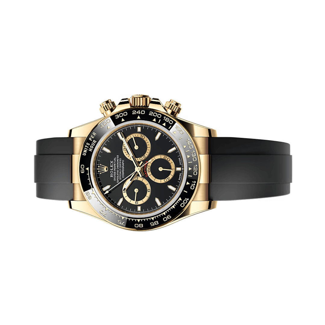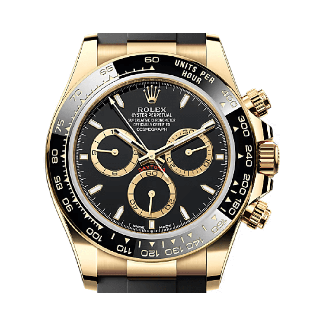 The Rolex Cosmograph Daytona 126518LN-0008 is a premium men’s watch crafted for both style and strength. It features a 40mm Oyster case made from 18k yellow gold, built with a solid middle case, screw-down case back, and winding crown. The black ceramic bezel is crafted using Rolex’s Cerachrom material and includes a tachymetric scale for measuring speed.