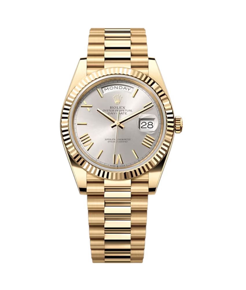 The Day-Date m228238-0002 features a 40 mm Oyster case made of yellow gold, exuding a sense of opulence. The fluted bezel, originally designed for functional purposes, has become an iconic Rolex feature. Its intricate design not only adds to the watch’s aesthetic appeal but also serves to ensure the watch’s waterproofness.