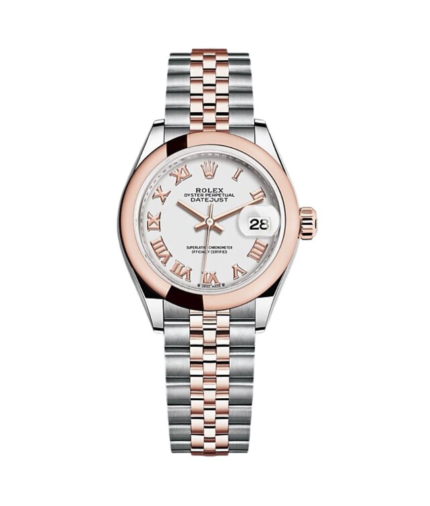 The Rolex Lady Datejust m279161-0021 features a 28 mm Oyster case made of durable Oystersteel and enhanced with Everose gold accents. The domed bezel adds a touch of sophistication to the overall design, making this watch a true statement piece. With a water resistance of up to 100 meters (330 feet), it is built to withstand everyday activities without compromising its elegance.