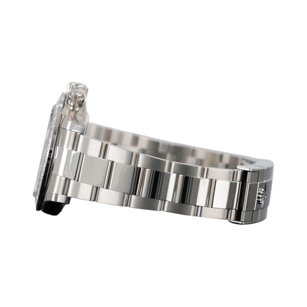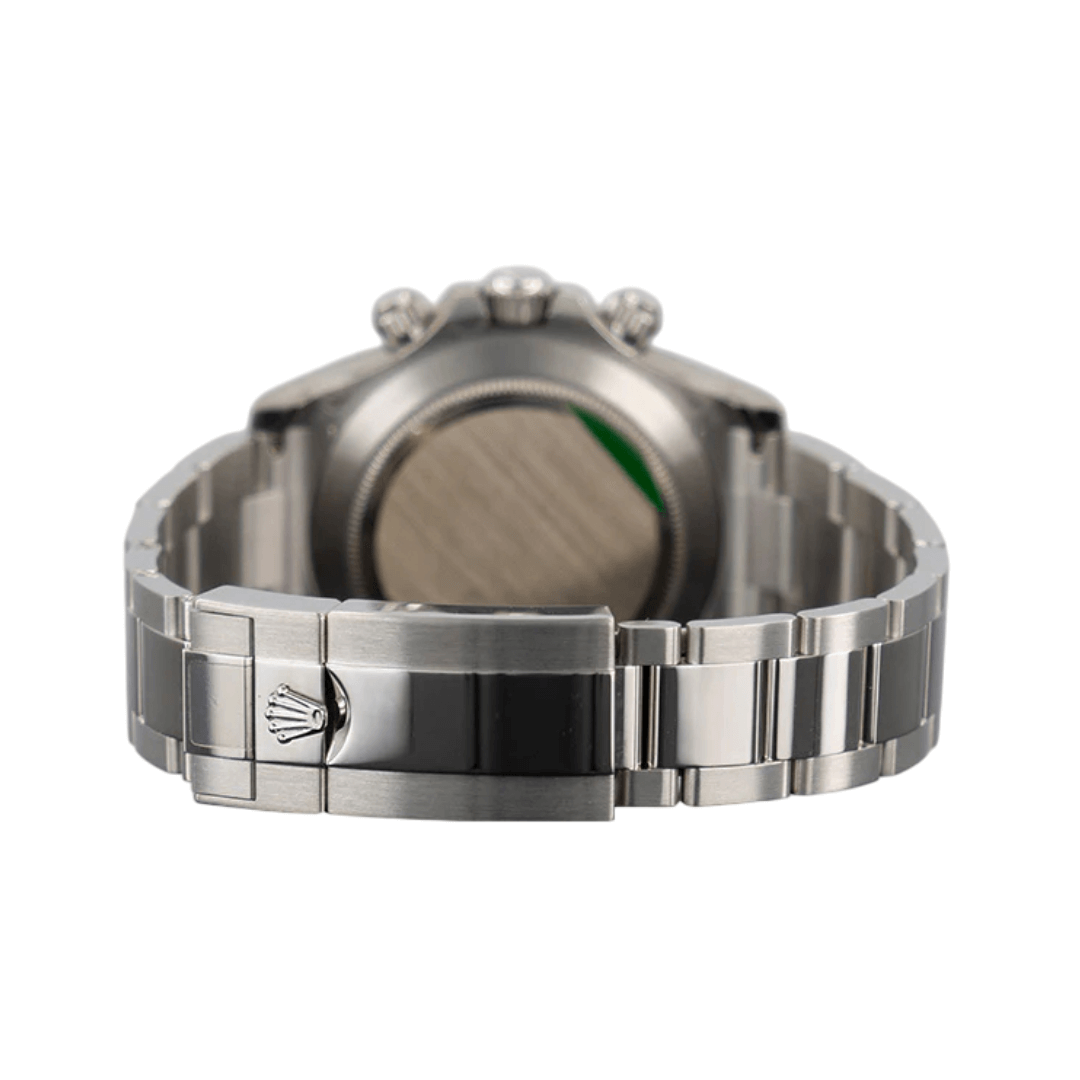 The watch case, bezel, clasp, and bracelet are all made from solid platinum, ensuring long-lasting luxury and strength. The 40mm case diameter offers a balanced and comfortable fit for the wrist. The anti-reflective and scratch-resistant sapphire crystal glass protects the dial, keeping it clear and flawless.