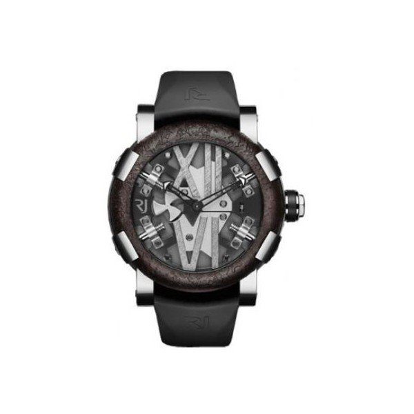 50mm?Steel and Black PVD-coated steel case, automatic movement, Deployment with Push Button clasp, solid case back, silver textured dial, fixed bezel, scratch resistant sapphire crystal, black rubber strap, water resistant to 30m/100ft.