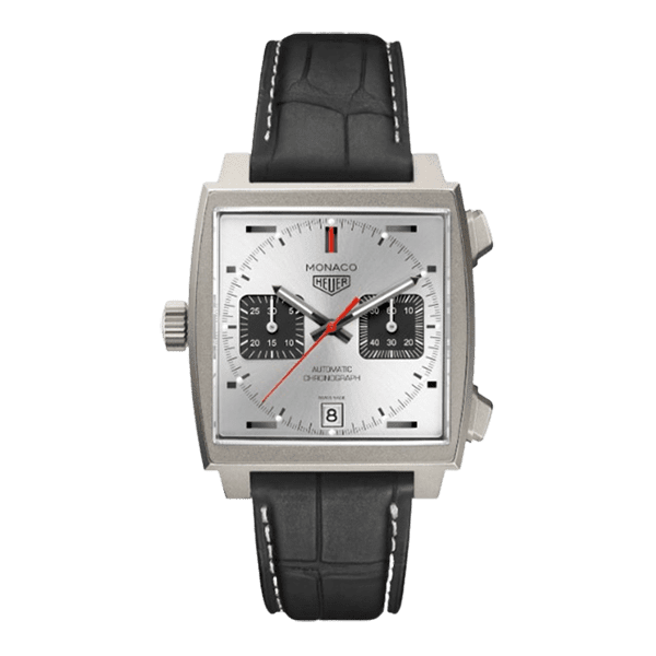 This Monaco features a vivid and gleaming grey-coloured dial which perfectly complements the titanium case. This special edition is equipped with a modern version of the famous Calibre 11 automatic chronograph movement.