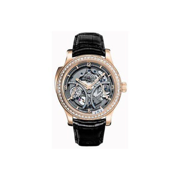 18K pink gold case, diamond bezel, open ruthenium dial dial, hand-winding calibre 947 movement with minute repeater, barrel torque indicator, power-reserve, approximately 15 days of power reserve, leather strap with deployant buckle. Water resistant to 50 meters.