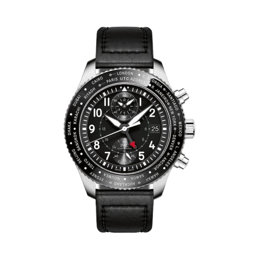 Crafted with stainless steel, the round case of the IW395001 exudes durability and sophistication. Its scratch-resistant sapphire crystal ensures a clear view of the striking black dial, while the bi-directional rotating bezel adds a touch of functionality to its design. The 46mm diameter and 16.8mm thickness make it a bold yet comfortable accessory.